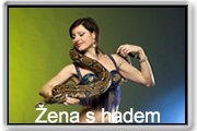 Tanečnice s hadem. Vystoupení profesionální tanečnice s živým hadem (hroznýš královský). Její vystoupení jsou známá po celé Evropě. |